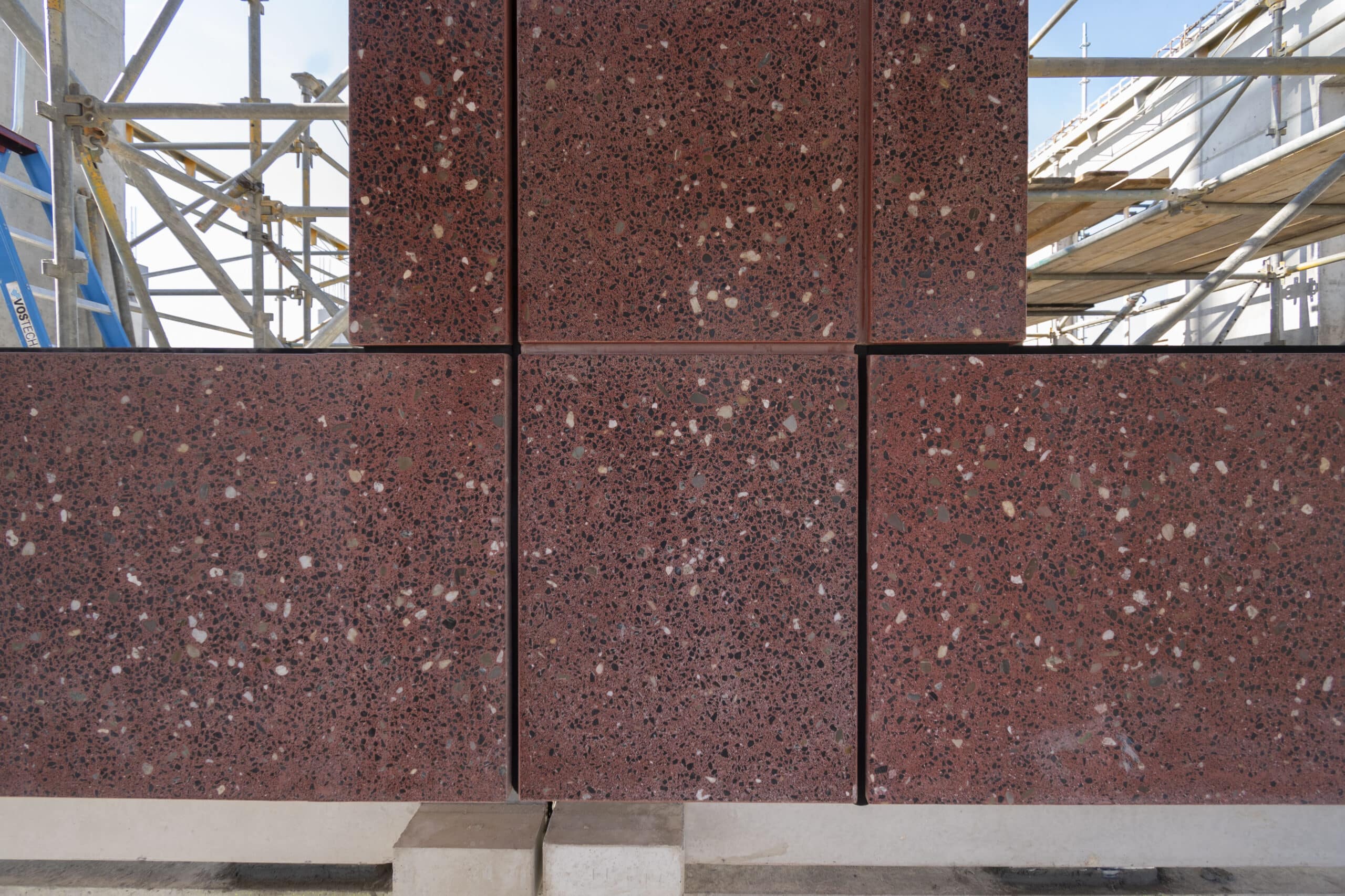 Bij The Bridge zijn Kondor Wessels Amsterdam bv en Preco B.V. gestart met de montage van de eerste gevelelementen van de woontoren. De dragende gevelelementen zijn opgedeeld in een binnen- en buitenschil, met daar tussen een dikke isolatielaag. De buitenschil (gevelafwerking) van het element is voorzien van gepolijst, rood beton. De gladde, licht glanzende kleur en de zichtbaarheid van de structuur van het mengsel, geven het gebouw een unieke uitstraling.