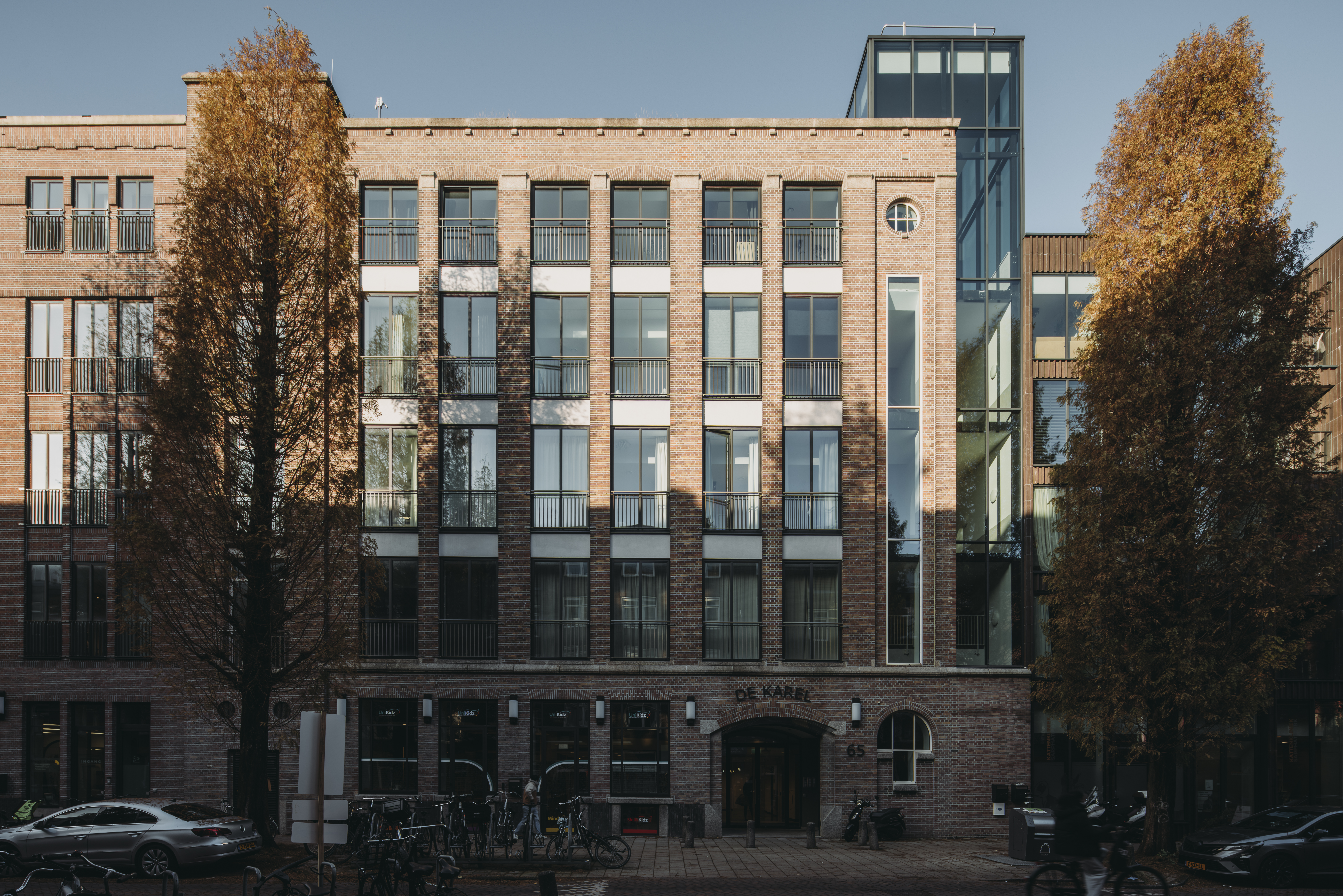 De gevel van De Karel 2.0 maakt het verschil. Stenen van Petersen Tegl van ongeveer 50 centimeter zijn verticaal geplaatst, waarbij platte en uitstekende stenen elkaar afwisselen. Dat geeft de gevel een bijzonder reliëf. Ook de binnenmuren van de balkons zijn met deze stenen bekleed. In combinatie met grote ramen en donkere kozijnen sluit De Karel 2.0 aan op de buren, maar behoudt het pand een eigen signatuur.