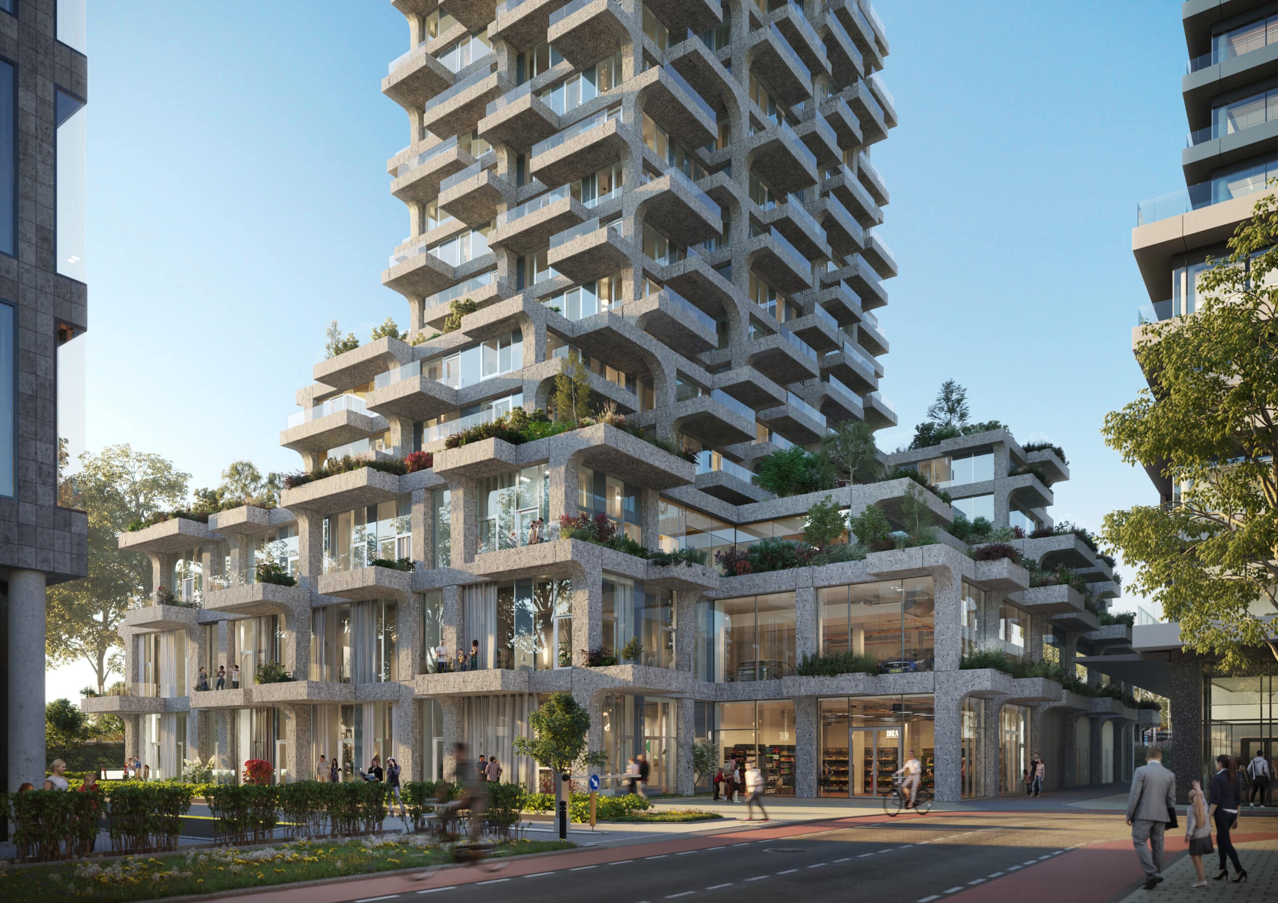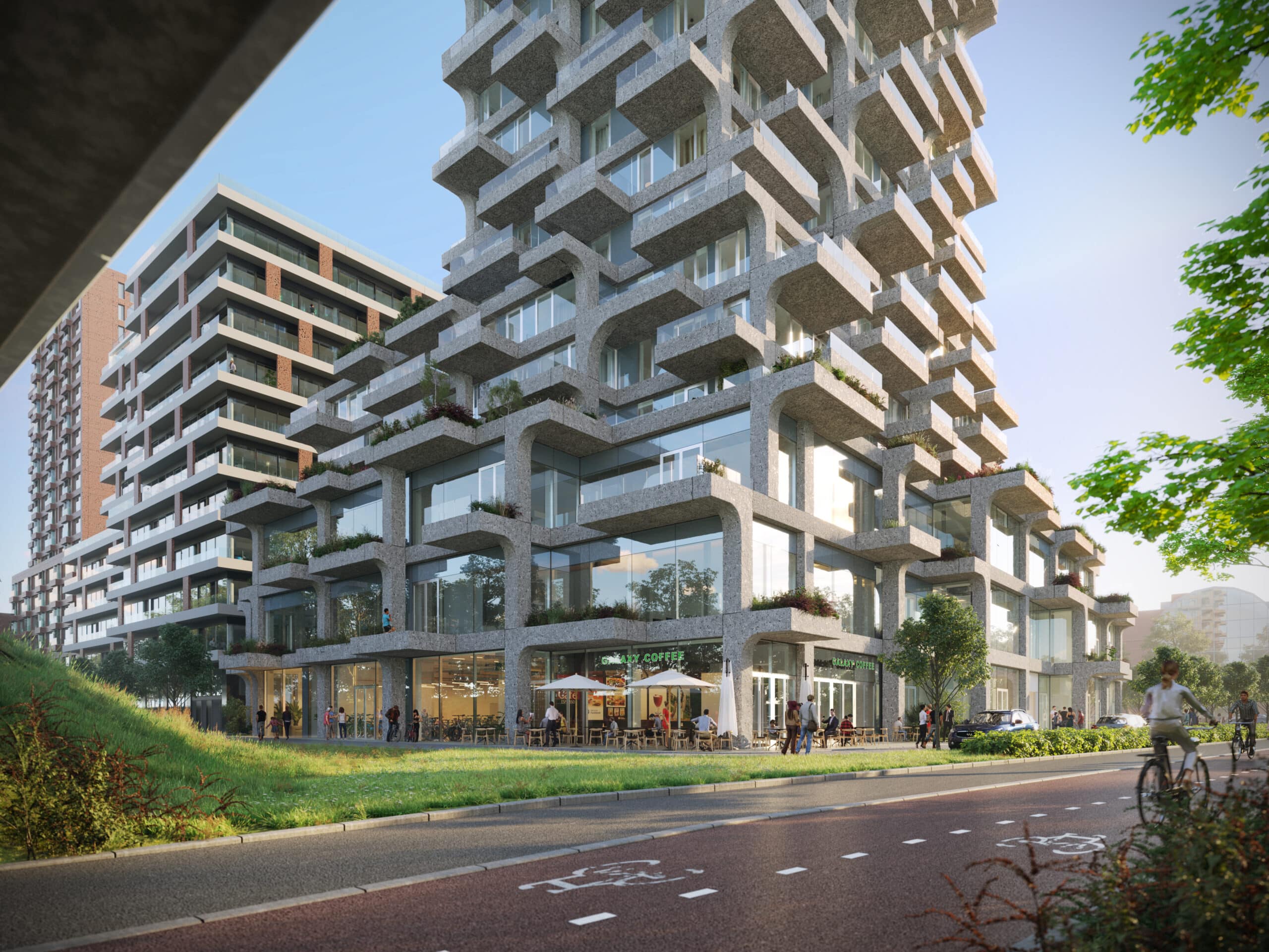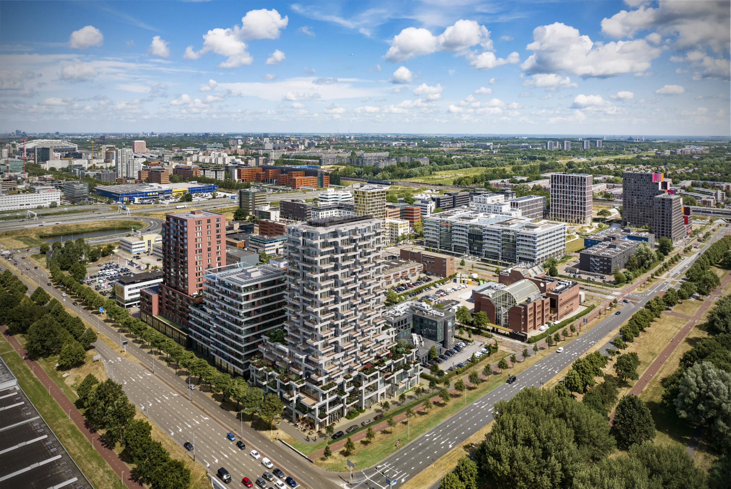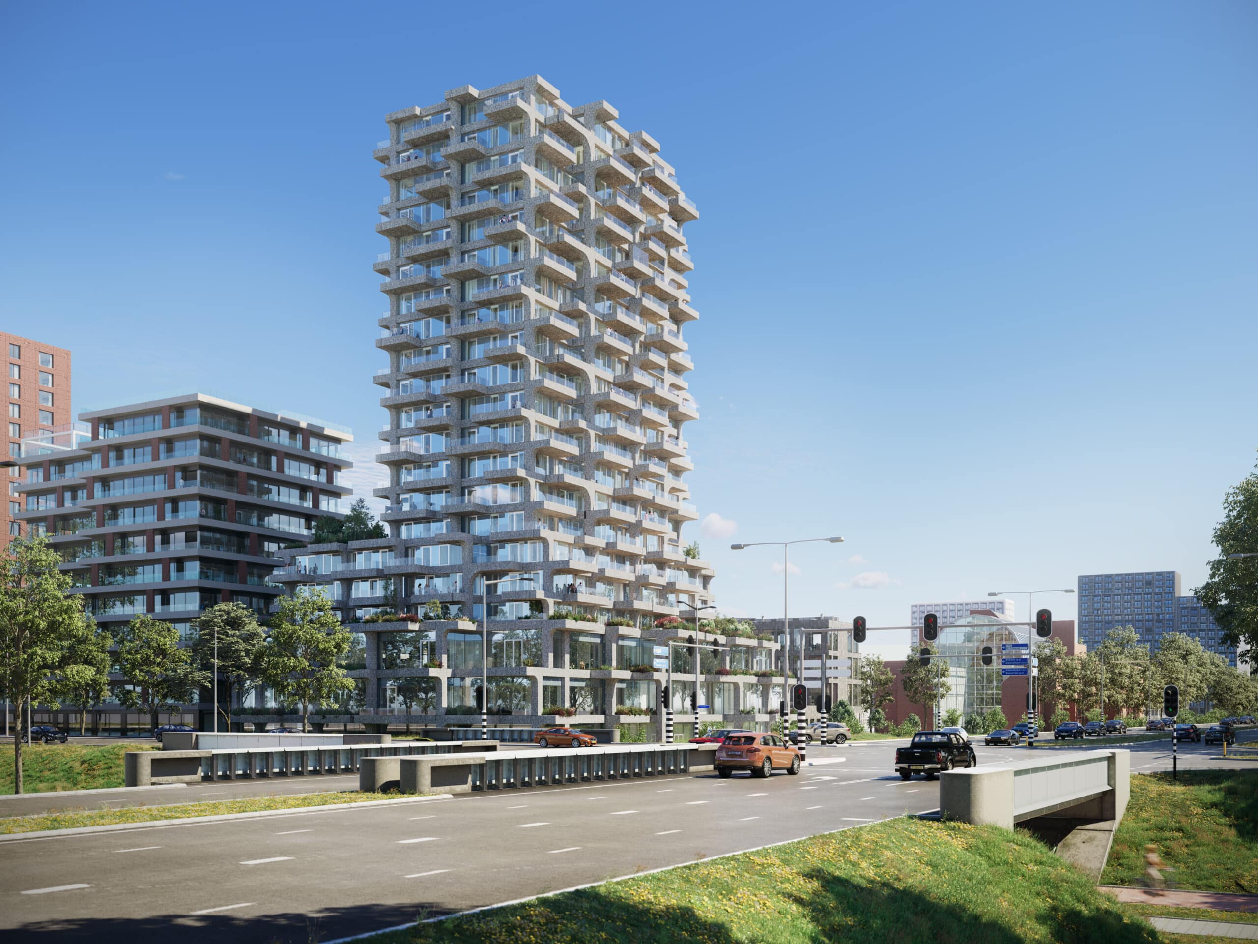 Het huidige kantoorgebouw wordt gesloopt. Op vrijwel het hele perceel komt een toren van 21 verdiepingen met 183 woningen, horeca en maatschappelijke voorzieningen. Het gebouw heeft verschillende hoogtes, en ook de balkons wisselen van positie en grootte. Sommige zijn compact, andere juist ruim. Die variatie zorgt voor een levendig aanzicht.